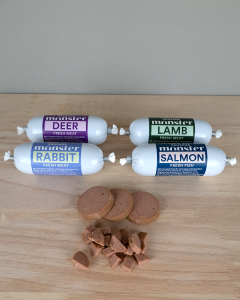 Köttiga, spannmålsfria och Monstergoda korvar! Serveras med fördel som helfoder, men funkar kanske allra bäst som belöningsgodis?