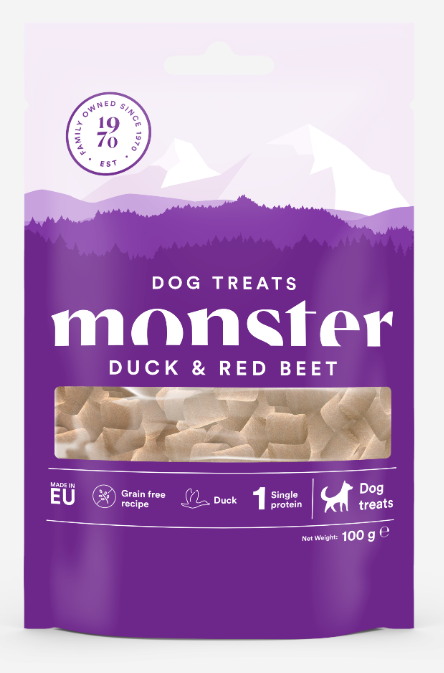 Kompletteringsfoder för hundar. Monster treats ska ges i samband med en hälsosam kost och är idealisk som snacks eller som belöning vid träning. Den faktiska mängden som ska ges beror på hundens ålder och aktivitetsnivå. Ge din hund Monster treats i måttliga mängder och se alltid till att den har tillgång till friskt vatten.