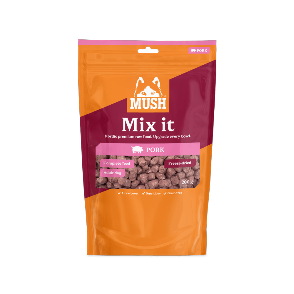 MUSH Mix it Freeze-Dried Gris är ett lätt och smidigt sätt att tillsätta råfoder i hundens mat – var som helst. Frystorkning bevarar råvarornas näringsämnen och smak utan tillsatser.