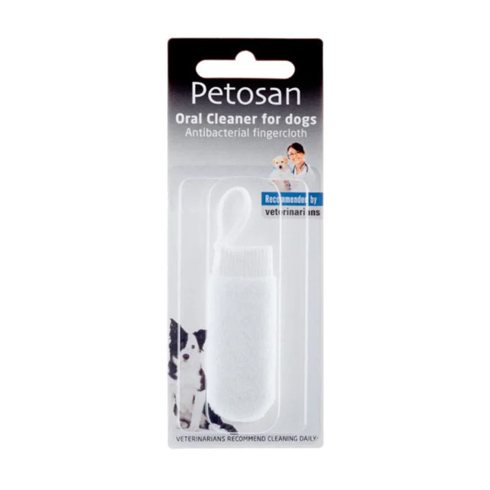 Husdjur får en snabb tandrengöring med Petosan® Microfiber Fingerbrush Oral Dog & Cat Cleaner.
