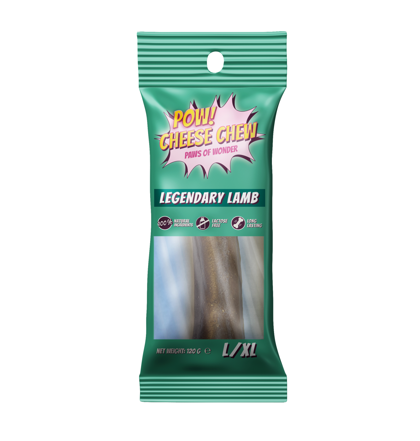 Cheese Chew med smak av lamm. Laktosfri, 100 % naturliga ingredienser och long lasting.
