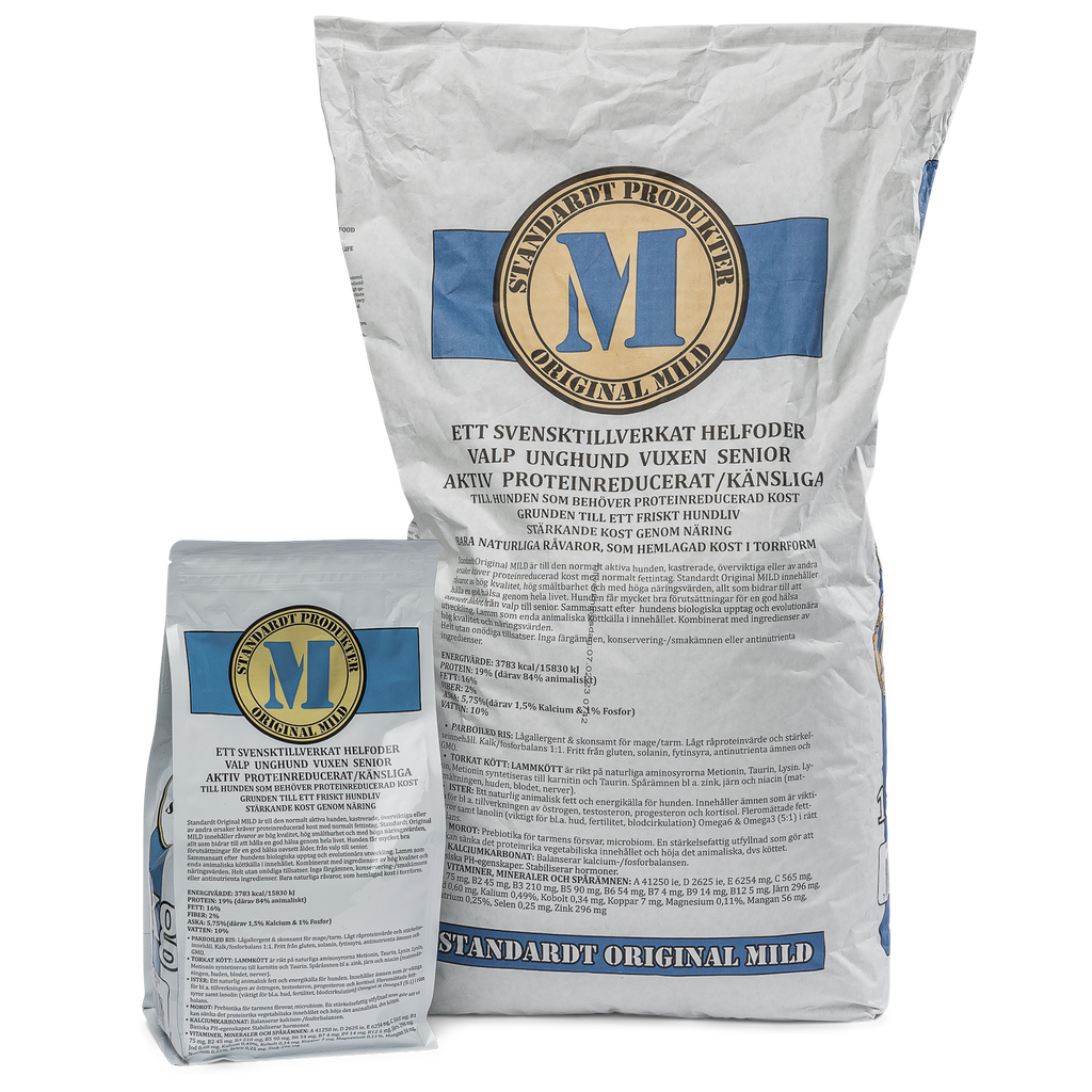 Ett balanserat hundfoder för hundar som är kastrerade, överviktiga eller av andra skäl kräver mindre protein, fett och kalorier. Mild hundmat passar hundar av alla åldrar, från valp, till vuxen, aktiv och senioren. Mängden foder anpassas efter individens behov.