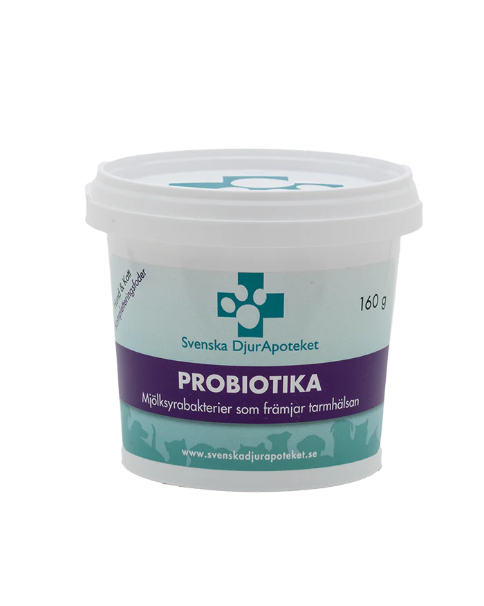 Probiotika är ett tillskott som består av mjölksyrabakterier. Mjölksyrabakterier har goda effekter vid störning i tarmfloran. När det blir obalans i magen kan det vara på grund av stressiga situationer, diarré, antibiotikabehandling, foderskifte eller till exempel matsmältningsbesvär.