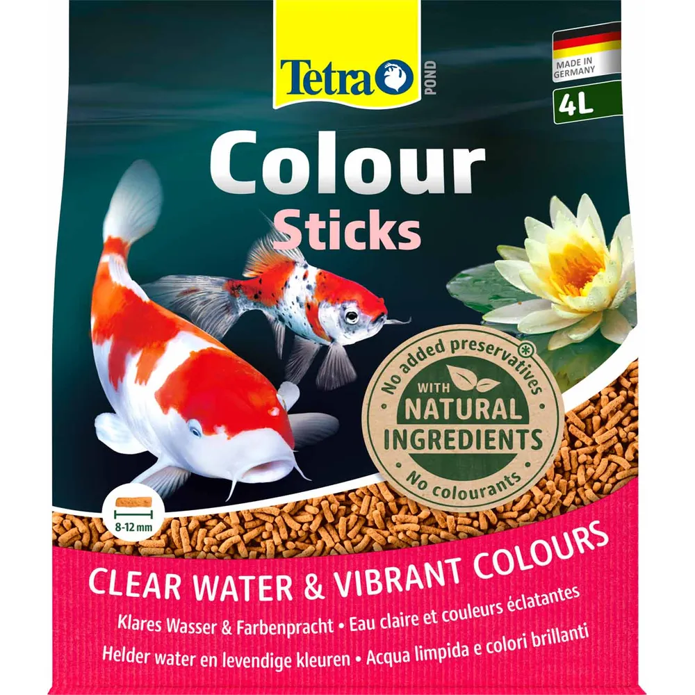 Tetra Pond Colour Sticks förstärker de naturliga, livfulla färgerna hos alla slags dammfiskar. Med naturliga karotenoider av hög kvalitet förstärker dessa pinnar färgprakten efter bara några veckors användning. Stickorna innehåller alla viktiga näringsämnen för en balanserad kost, inklusive optimerade blandningar av näringsämnen för ökad motståndskraft och matsmältning. De snabbt vattenupplösliga pinnarna är lätta att smälta och hjälper till att upprätthålla rent vatten och förbättrad vattenkvalitet.